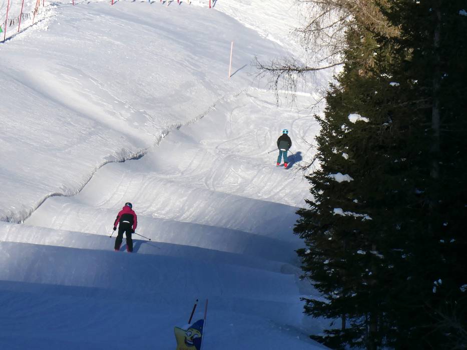 Der SnowTrail befindet sich rechts bei der Hirschkogelpiste im Bereich der Abzweigung zum Sonnkogel. Mit Wellenbahn, Steilkurven und Obstacles haben große und kleine Gäste richtig Spaß beim Skifahren und Snowboarden.