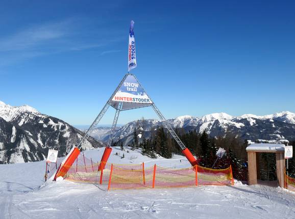 Das Skigebiet Hinterstoder bietet keinen klassischen Snowpark, aber mit dem SnowTrail und dem Crosstrail spannende Erlebnispisten.