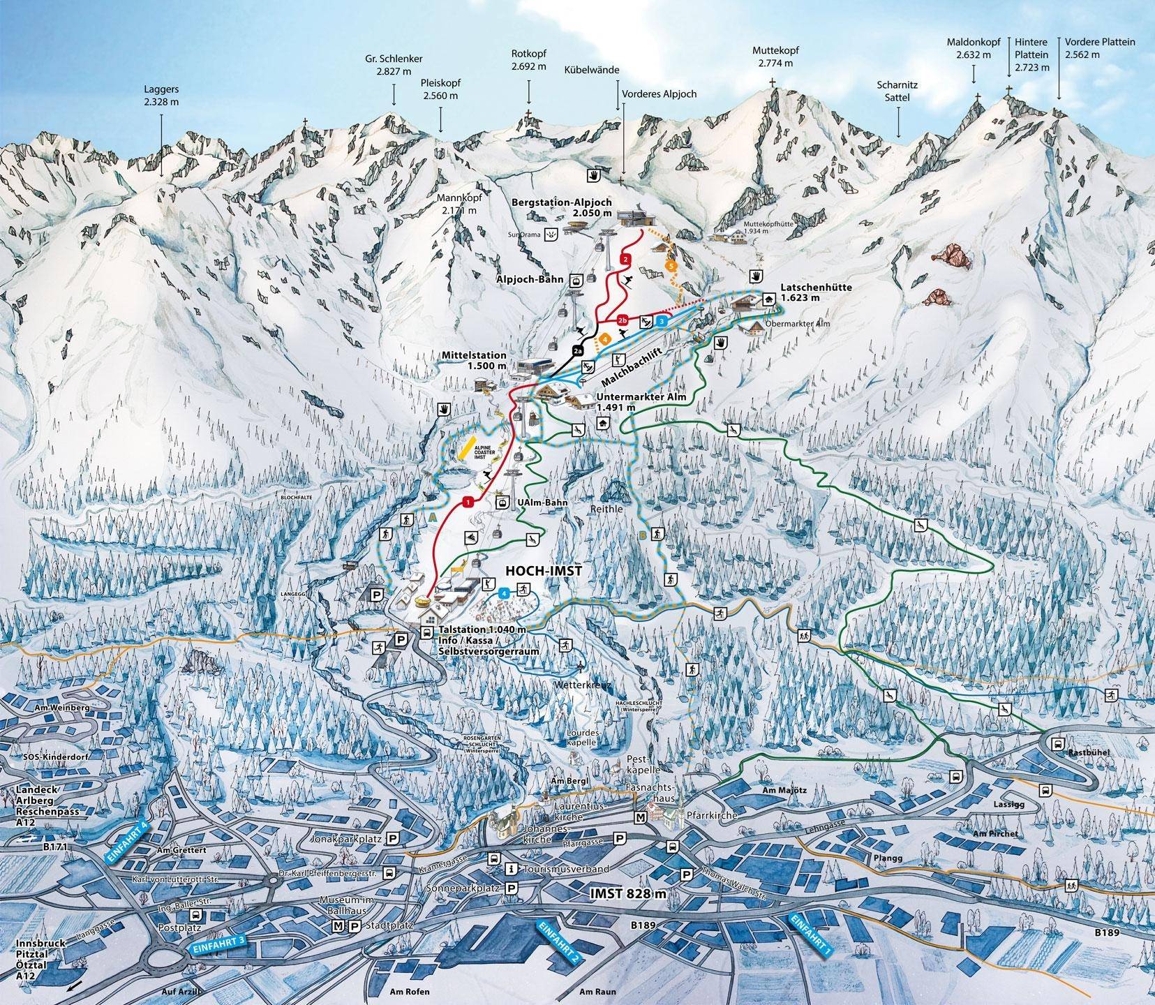Hoch-Imst (0,1 km), Imst (2,3 km), Tarrenz (6 km), Karrösten (6 km) Orte am Skigebiet