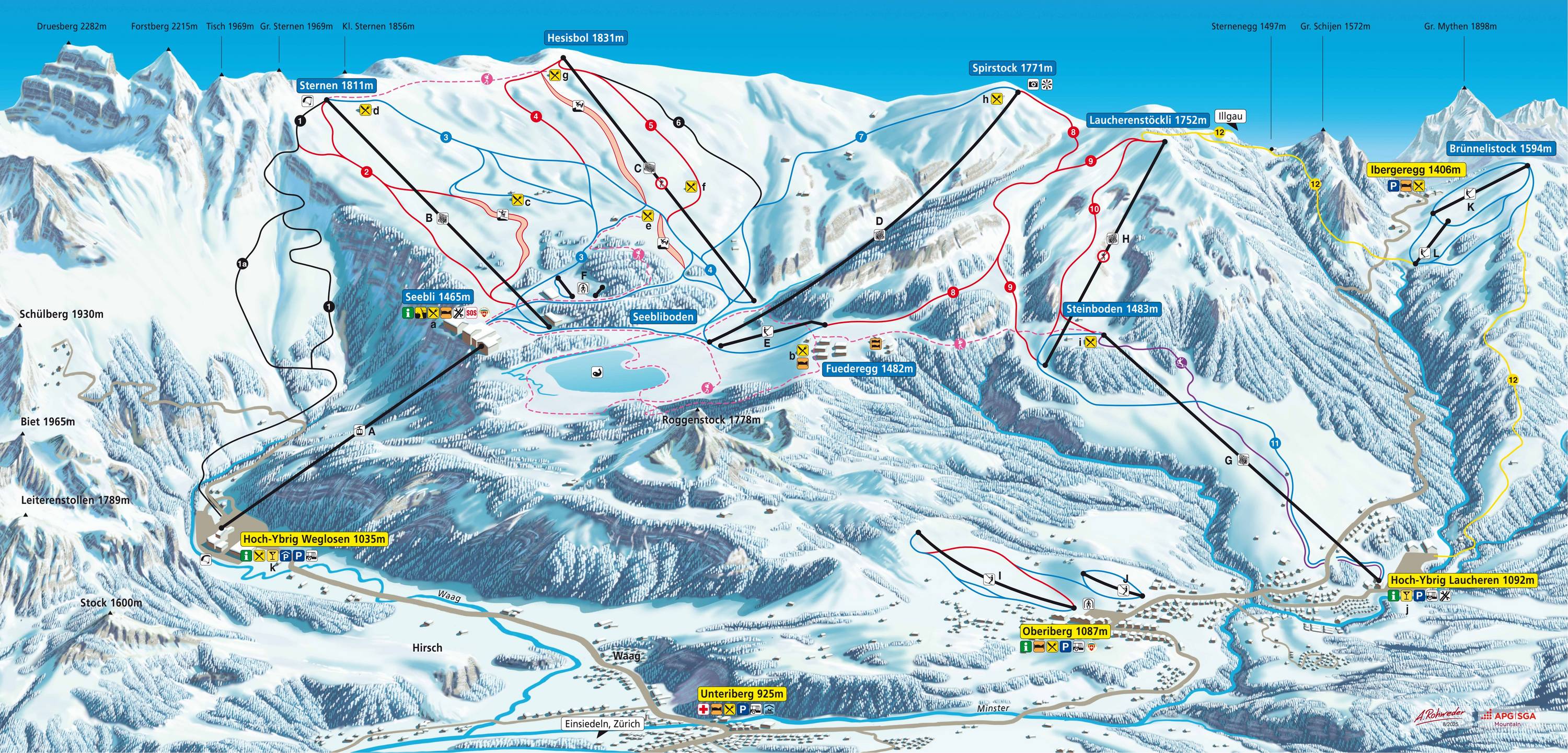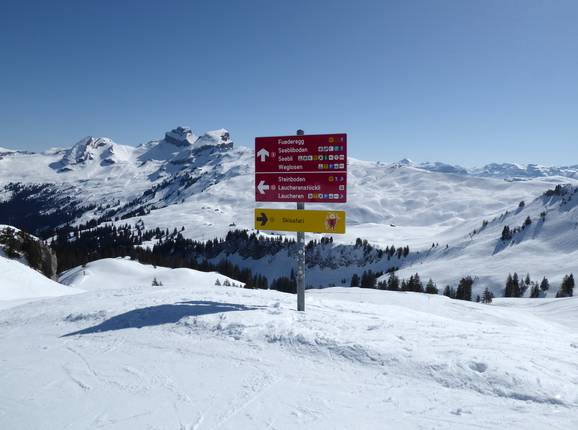 Orientierung (Pistenplan, Informationstafeln, Ausschilderung) und Sicherheit im Skigebiet Hoch-Ybrig – Unteriberg/Oberiberg