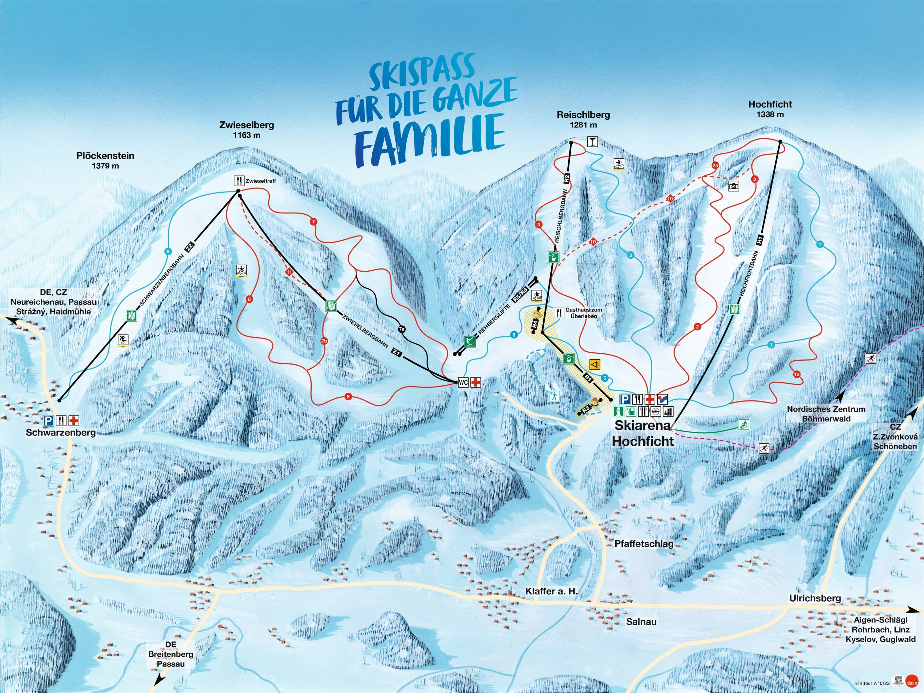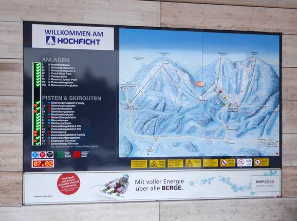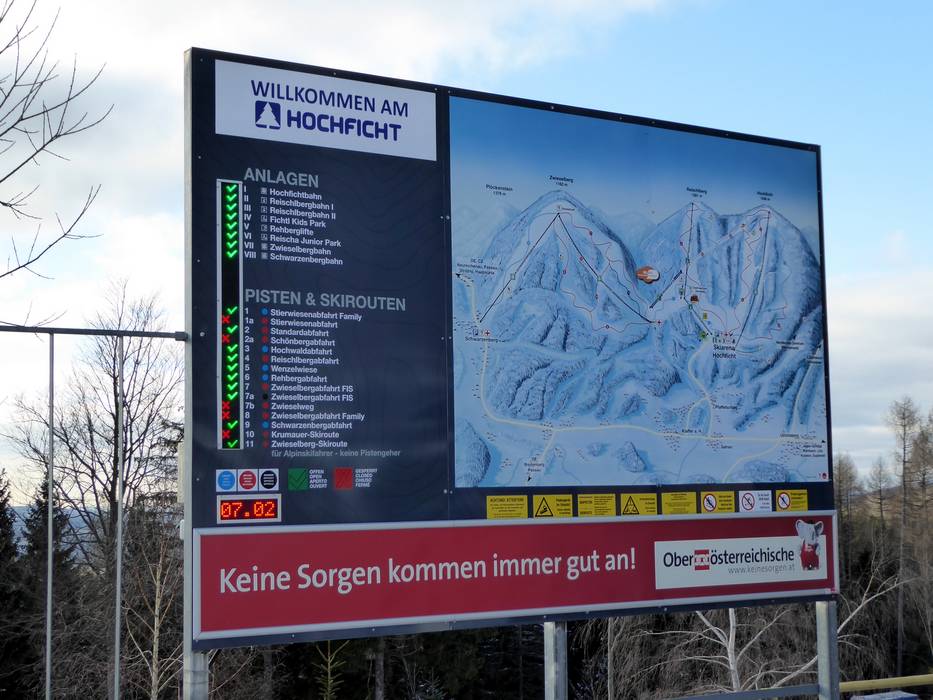 Orientierung (Pistenplan, Informationstafeln, Ausschilderung) und Sicherheit im Skigebiet Hochficht