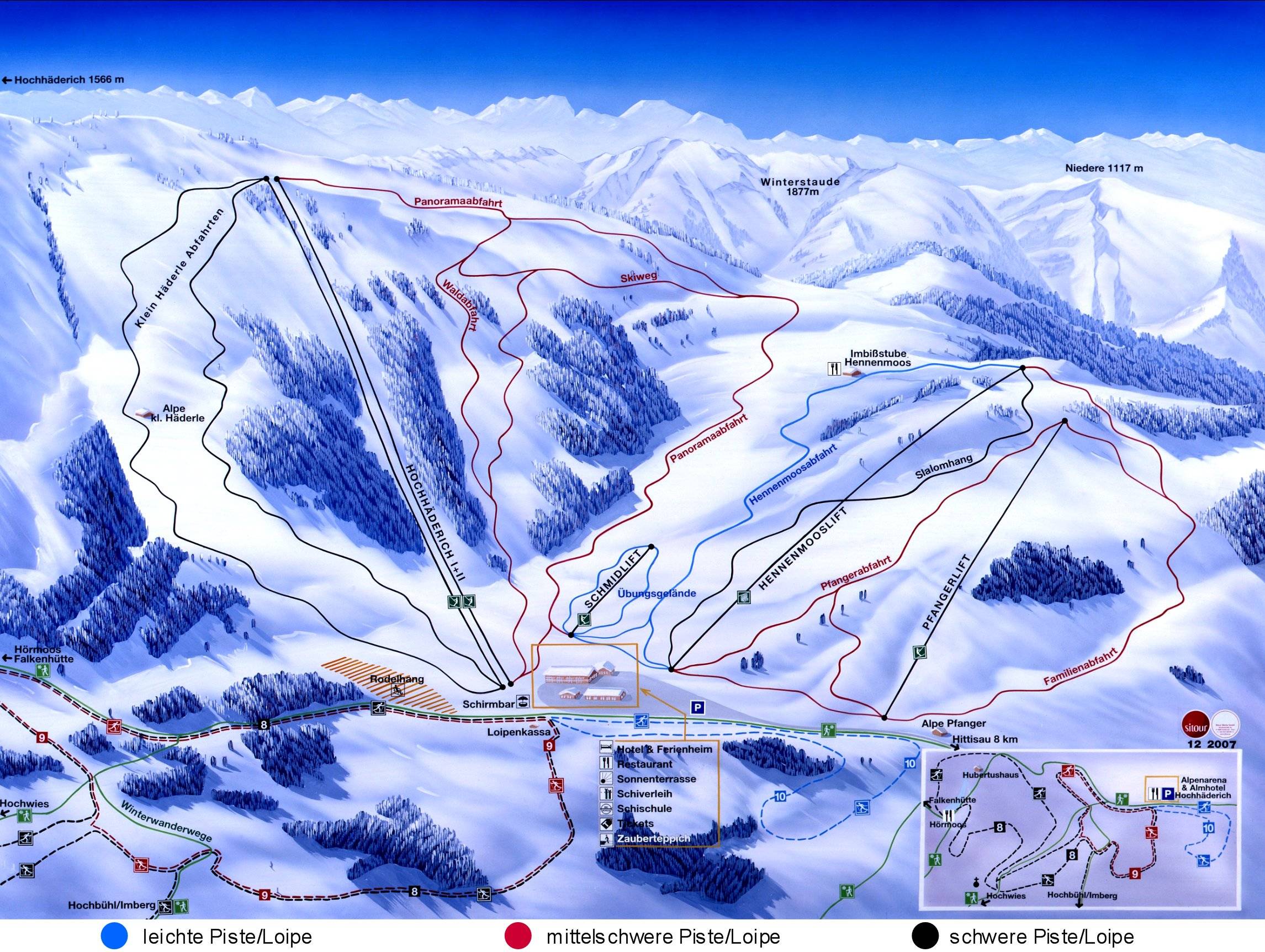 Pistenplan vom Skigebiet Hochhäderich – Hittisau