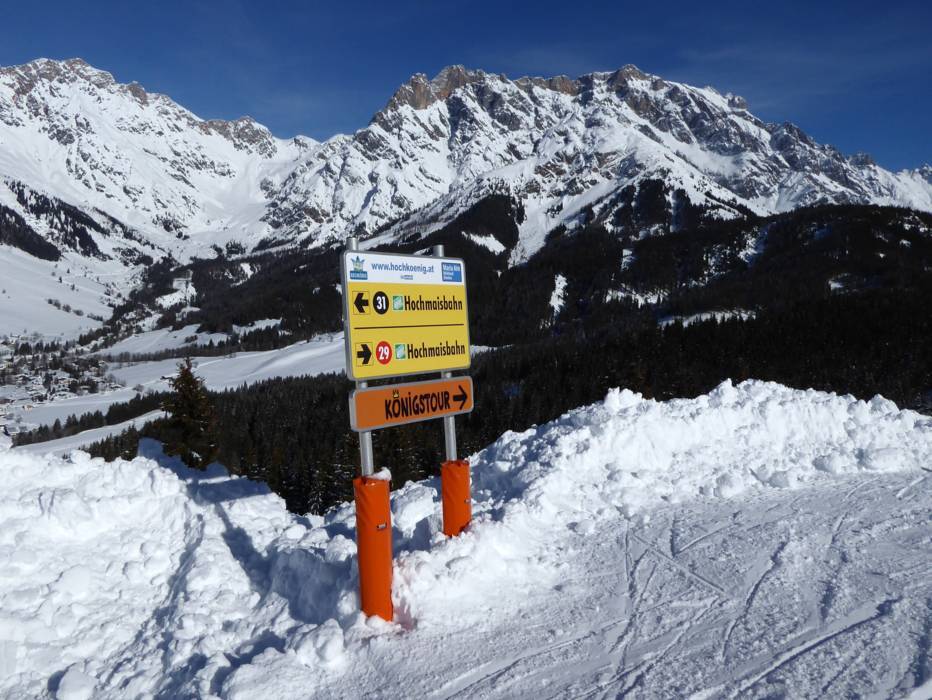 Das Skigebiet Hochkönig verbindet die Orte Mühlbach, Dienten und Maria Alm am Steinernen Meer. Eine der atemberaubendsten Skirunden der Alpen bietet das Wintersportgebiet am Hochkönig mit der Königstour. Die Strecke mit 35 durchgehenden Pistenkilometern und dem höchsten Punkt auf rund 1.900