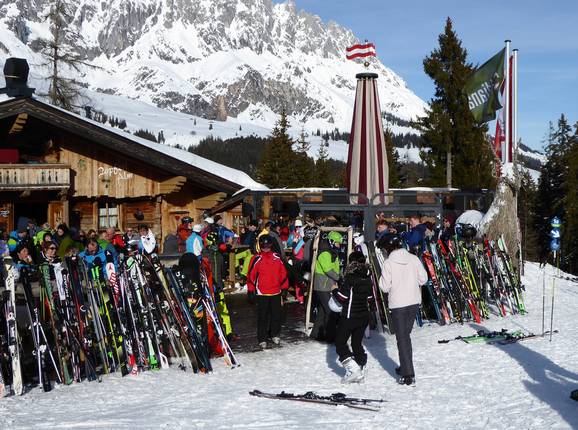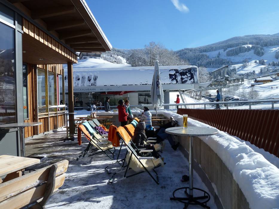 Der Tiergartenscherm lädt mit großer Terrasse und einem gemütlichen Schirm zum Après-Ski ein - man kann ohne weiteren Lift direkt bis Mühlbach abfahren.