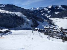 An der Abfahrt 14 nach Dienten kurz oberhalb der Talstation des Bürglalm 6er-Sessellifts.