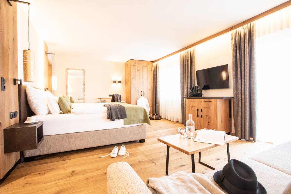 Im neuen modernen Gesicht präsentieren sich die Rezeption, die Lobby, die Bar, die gemütlichen Stuben, das Kinderspielzimmer sowie der moderne Skiraum. Die neuen Zimmer und Suiten sind stilvoll eingerichtet mit viel naturbelassenem Holz und Tiroler Gemütlichkeit.