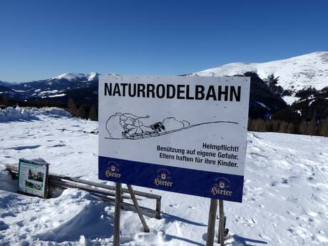 Mehrere Rodelbahnen stehen auf der Hochrindl bereit. Beispielsweise die beleuchtete Naturrodelbahn von der Hiasl Zirbenhütte zum JUFA-Hotel/Zirbenpiste.