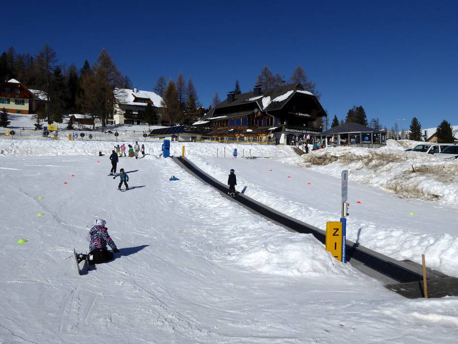 Das Känguruland der Skischule Hochrindl ist mit zwei Zauberteppichen sehr gut ausgestattet. Hier können Kinder in Ruhe das Skifahren lernen.