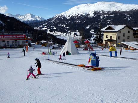 Das Konzept „Spielplatz Schnee“ ist speziell für Kinder von drei bis sechs Jahren ausgelegt. Am Vormittag ist der Skiunterricht in kleinen Gruppen und am Nachmittag steht das Spielen im Schnee auf dem Programm. Mit den Maskottchen Pitzi und Gratsch wird z.B. gerodelt, Iglu gebaut oder durch den Schnee gewandert.
