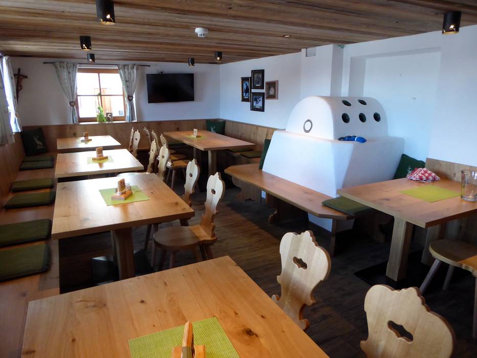 Das Hochzeiger Haus bietet gemütliche Stuben mit Kachelofen, eine Sonnenlounge und eine große Panoramaterrasse. Es wird bedient.