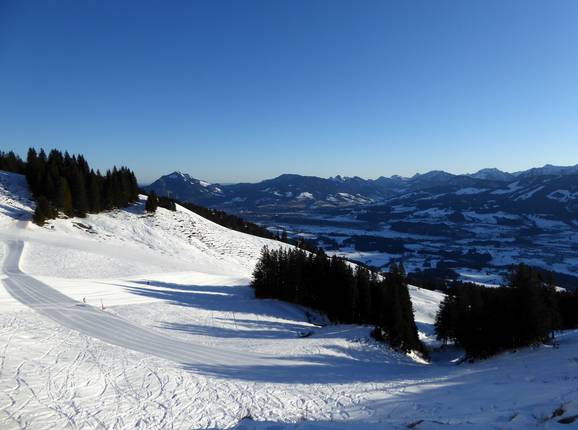 Die Hörnerbahn in Bolsterlang zählt im Allgäu zu den größeren Skigebieten. Es erstreckt sich vom Bolsterlanger Horn bis zum Weiherkopf. Man hat einen herrlichen Blick über das Allgäu bis hin zum Grünten.