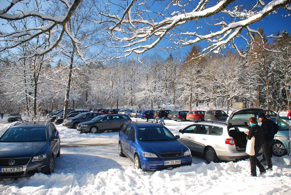 Parkplätze: meist ausreichend vorhanden, asphaltierter Platz, Kiesplatz, kostenfrei