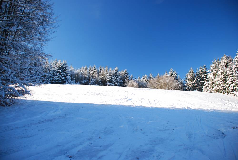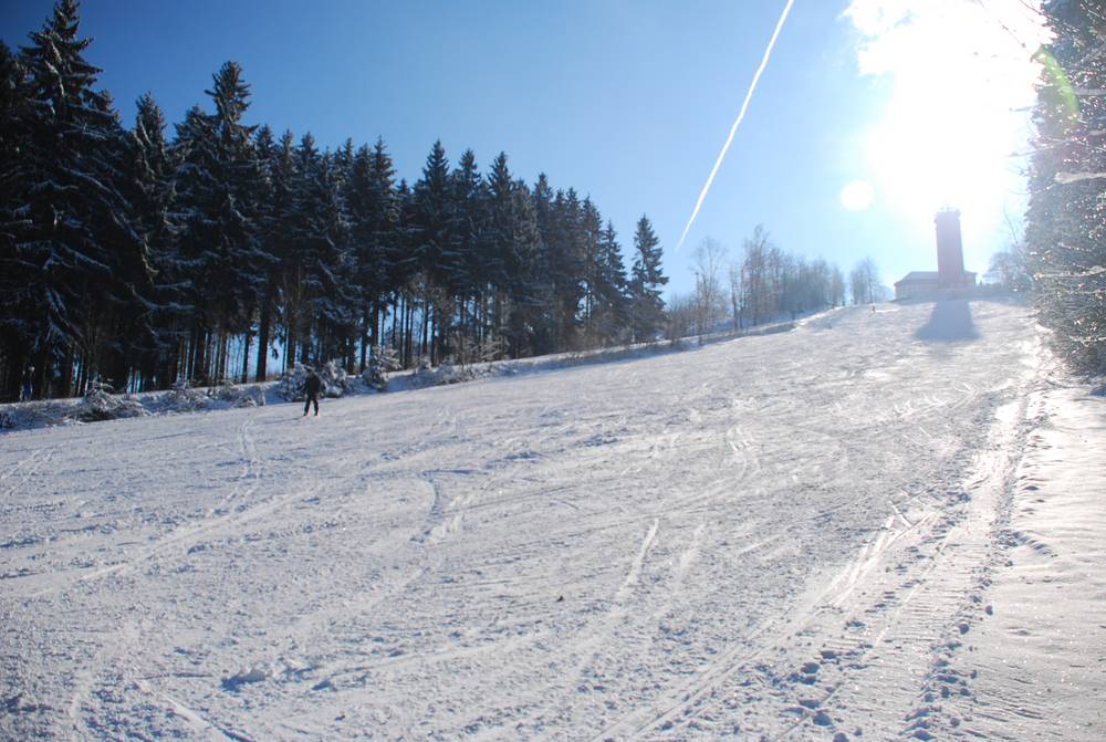 Das Skigebiet bietet zwei Pisten: die mittelschwere Hauptabfahrt am oberen Lift und die leichte Variante hinunter zum unteren Lift.