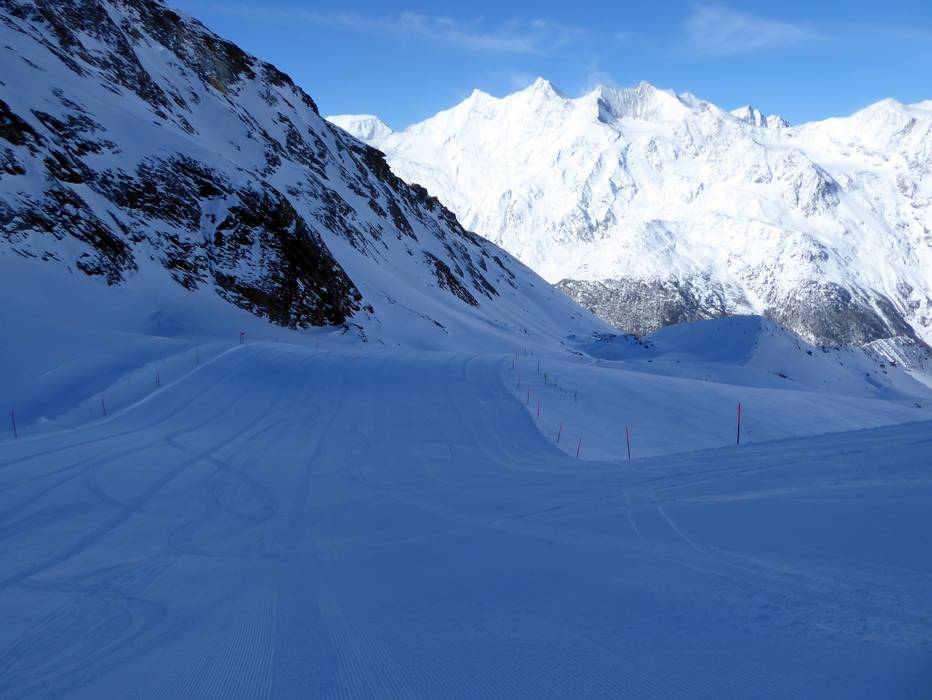 Ein Skiroute befindet sich am Gletscher und eine weitere Skiroute führt nach Saas-Balen.