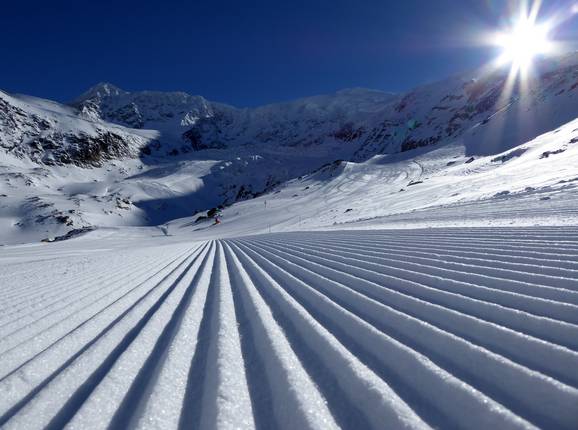Die Pisten werden täglich mit viel Liebe zum Detail präpariert. Vom Gletscher bis ins Tal sind die Pisten in einem Top-Zustand. Fünf Pistenfahrzeuge sind im Einsatz.