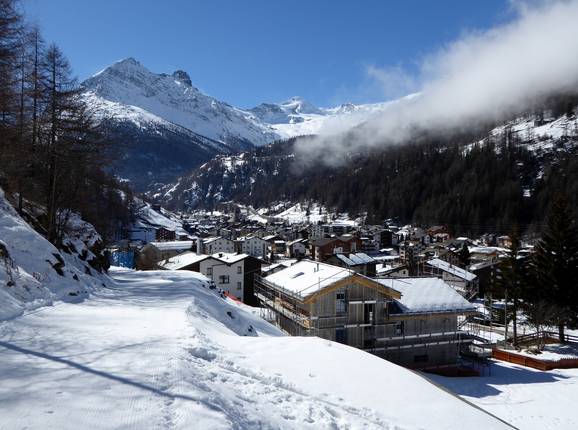 Einige Unterkünfte liegen direkt an der Talstation in Saas-Grund. Highlight ist sicher eine Übernachtung auf 3142 m im Bergrestaurant Hohsaas. Hier werden Mehrbettzimmer und ein Gruppenraum angeboten. Ansonsten sind sämtliche Unterkünfte im Saastal sehr leicht mit dem PostAuto zu erreichen.