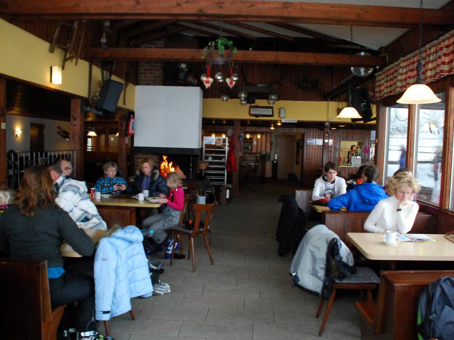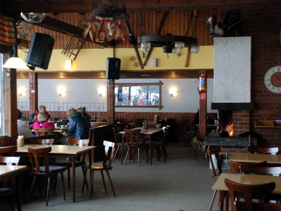 Rustikal eingerichtet, offener Kamin, deftige Hausmannskost (Wurst, Schnitzel, Grünkohl, Suppen, Pommes, Kartoffelsalat) und Kuchen, u.a. auch den leckeren Hüttenstrudel, an der SB-Theke, separate Getränketheke.