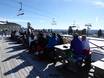 Die gemütliche Skihütte bietet eine große Sonnenterrasse und gutes Essen. Ab dem Nachmittag kann man hier zum Après-Ski übergehen.