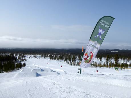 Das Skigebiet Idre Himmelfjäll bietet einen keinen Funpark und eine kurze Funslope. Ausgerichtet auf Familien und Anfänger.