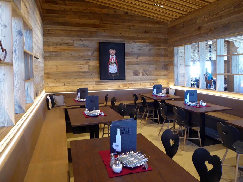 Seit Beginn der Wintersaison 2017/18 verwöhnt das Tafel & Zunder seine Gäste. Das gehobene Bedienrestaurant bietet eine lokale und hochwertige Bio-Küche. Das Ambiente ist mit den natürlichen Materialien wie Altholz, Stein und naturbelassenen Stoffen sehr einladend. Auch auf der großen Sonnenterrasse wird bedient.