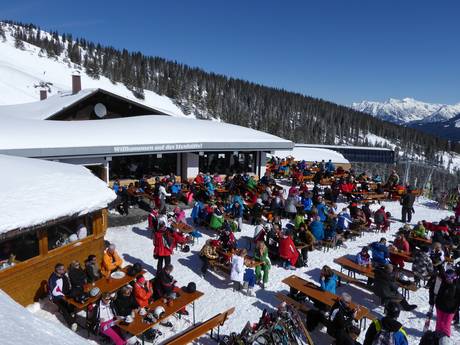Die Auenhütte bietet frische Schmankerl aus der Region. Das SB-Restaurant hat gemütliche Stuben und eine große Sonnenterrasse. Im Laubela Mountain Club kann man zum Après-Ski übergehen.