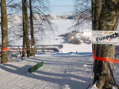 Der Salzwinkel Snowpark ist der größte Funpark auf der Schwäbischen Alb. Zusätzlich gibt es noch Schanzen und Wellenbahnen im Skigebiet verteilt.
