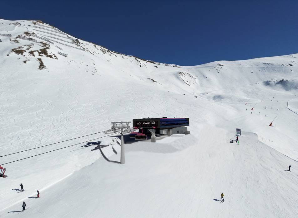 Die neue Höllkarbahn ersetzt die 6er-Sesselbahn Höllkar auf gleicher Strecke. Die moderne, komfortable und leistungstarke Bahn ist mit der hochmodernen Ein- und Ausstiegsüberwachung (AURO: Autonomous Ropeway Operation) von Doppelmayr ausgestattet. Photovoltaikanlagen auf den Dachflächen der Liftstationen sorgen für nachhaltige Energiegewinnung.