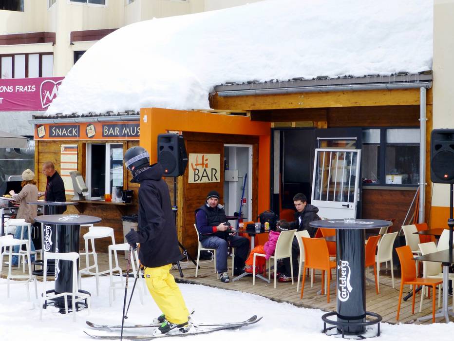 An der Hi Bar geht es etwas ruhiger zu als an den anderen Après-Ski Bars und Hütten. Die Hi Bar bietet eine große Terrasse mit gutem Blick auf die westliche Seite des Skigebiets.
