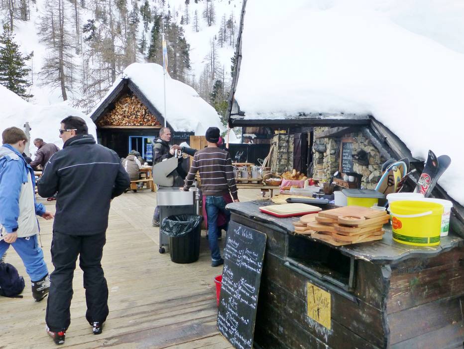 Bei der Berghütte La Valette lohnt es sich früh da zu sein. Die vielen Speisen und die tolle Atmosphäre ziehen viele Gäste an. Im Außenbereich auf der großen Terrasse gibt es zusätzlich frisches Fleisch vom Grill. Der Esel im Stall unter der Terrasse ist besonders bei den Kindern sehr beliebt!
