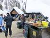 Die Mehrheit der Bergrestaurants befindet sich am Kinderland entlang des Dorfes. In den meisten gibt es Selbstbedienung. Viele Einkehrmöglichkeiten bieten auch nur kleine Imbisse an. In einigen Hütten wird bedient. Generell ist das Preisniveau relativ gehoben.