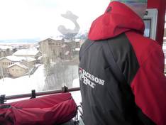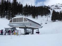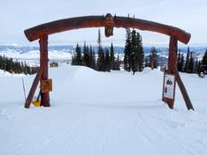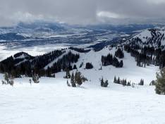 Leichte Pisten am Teton Village Blick zum Rendevouz Mountain mit Aerial Tram