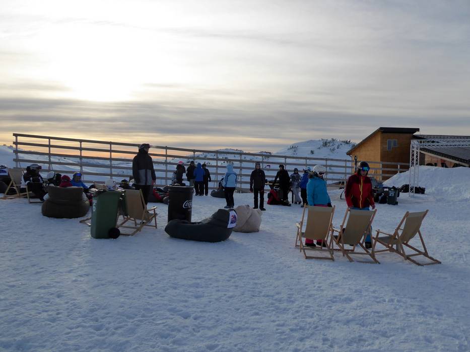 Am Gipfel lässt man den Skitag vor der Olimp Bar mit DJ bei lauter Musik ausklingen. Aber um 16 Uhr muss ins Tal abgefahren werden.