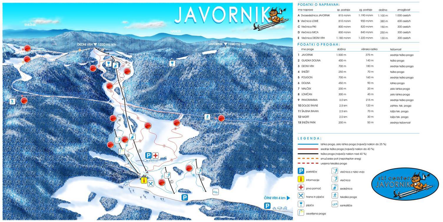 Pistenplan Javornik Saison ---- !!! closed temporarily/vorübergehend außer Betrieb