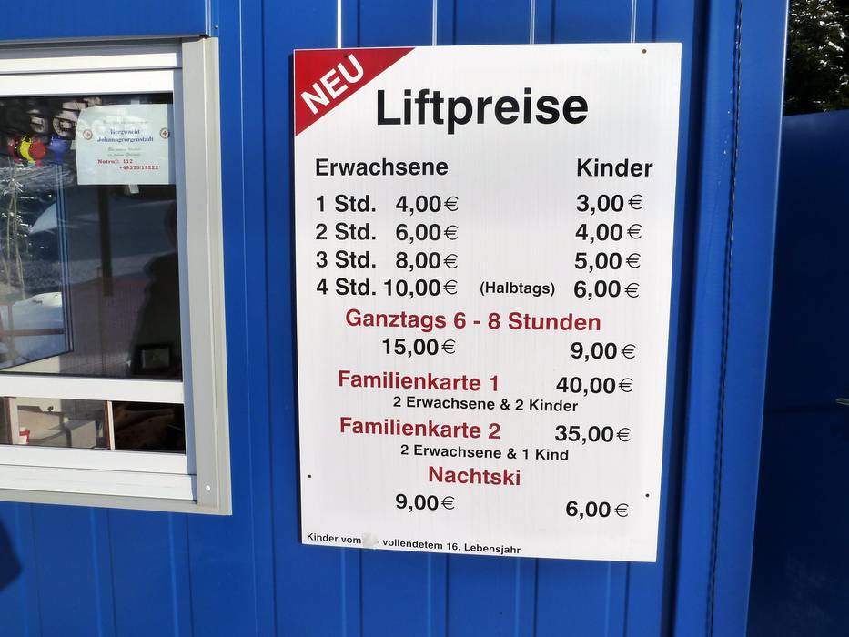 | Hinweis: Die Öffnungszeiten sind generelle Angaben vom Skigebiet Johanngeorgenstadt – Külliggut und können je nach äußeren Bedingungen, Wochentagen, Schulferien und Feiertagen variieren. | |
