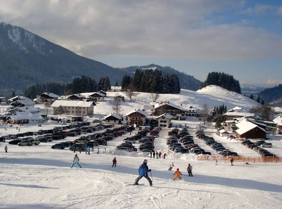 In Jungholz stehen 600 kostenfreie Parkplätze zur Verfügung. Man kann vom großen Parkplatz ganz leicht die Bischlag- oder Adlersesselbahn erreichen.