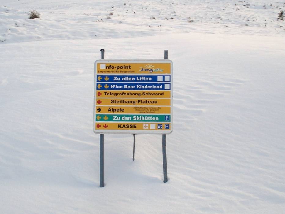Orientierung (Pistenplan, Informationstafeln, Ausschilderung) und Sicherheit im Skigebiet Jungholz