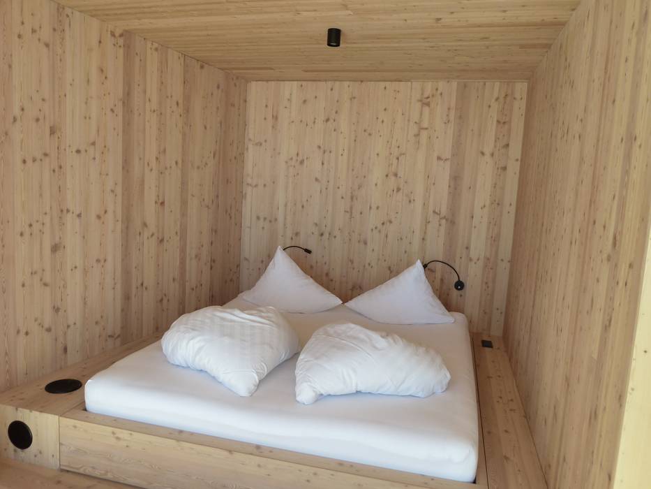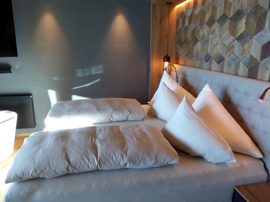 Highlight sind die vier Premium Suiten und der Wellnessbereich. Von der Sauna hat man einen atemberaubenden Blick auf die umliegenden Berge. Die Verpflegung ist auf 5-Sterne-Niveau. Wenn man eines der acht edlen Doppelzimmer oder der vier Suiten ergattern möchte, sollte man rechtzeitig buchen.