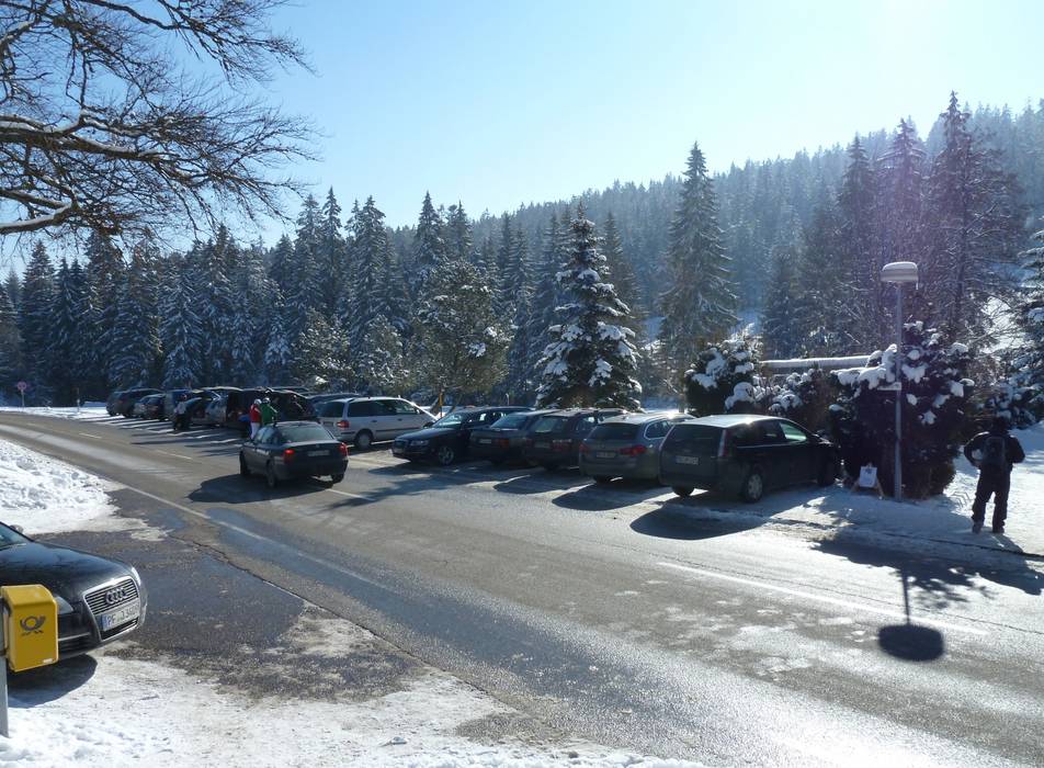Parkplätze sind in ausreichender Zahl an der Landstraße zu finden. Nur bei schönem Wetter an Wochenenden wird es manchmal eng.