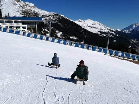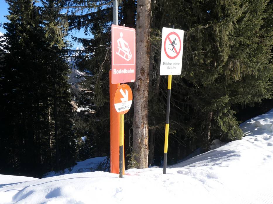 Die 6 km lange Rodelbahn zur Talstation ist ein Spaß für die ganze Familie. Die Auffahrt erfolgt bequem mit der 10er-Gondelbahn Dias.