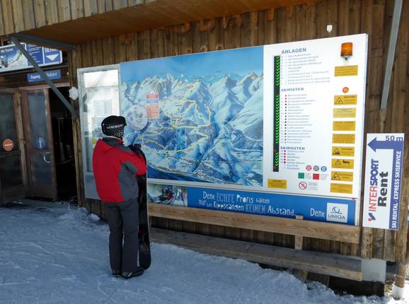 Orientierung (Pistenplan, Informationstafeln, Ausschilderung) und Sicherheit im Skigebiet Kappl