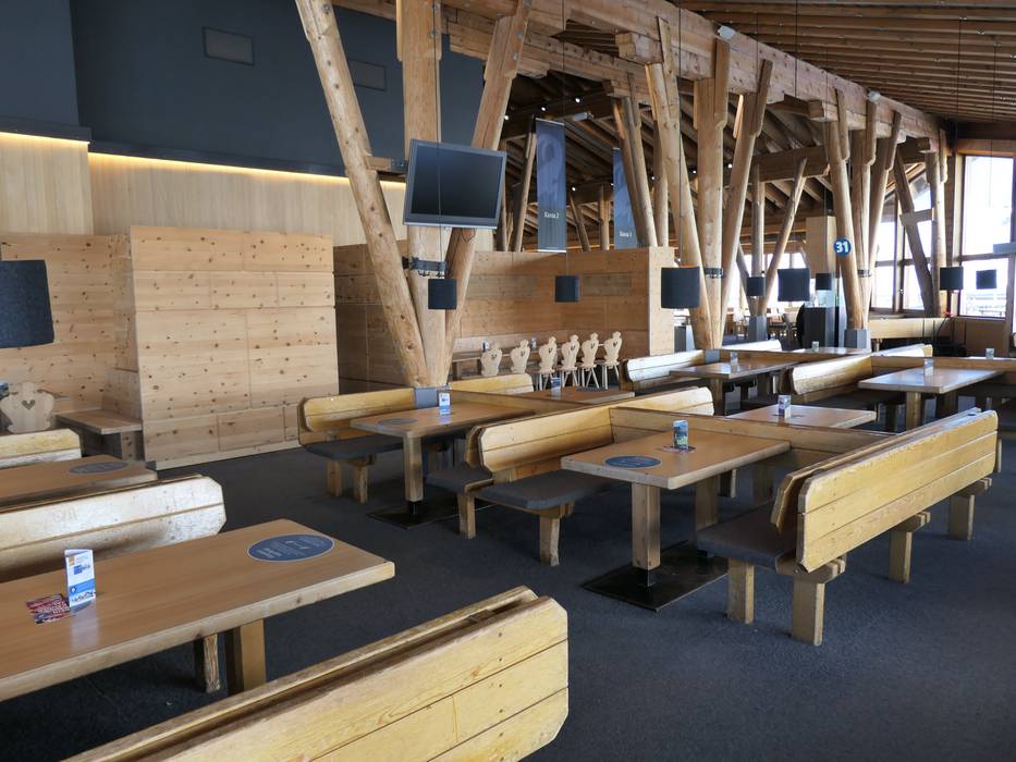 Das SB-Restaurant bietet Tiroler Spezialitäten, internationale Küche und vegetarische Gerichte. Der Holzbau ermöglicht mit seinen großen Glasflächen den Blick auf den Gletscher. Die große Sonnenterrasse lockt an schönen Tagen.