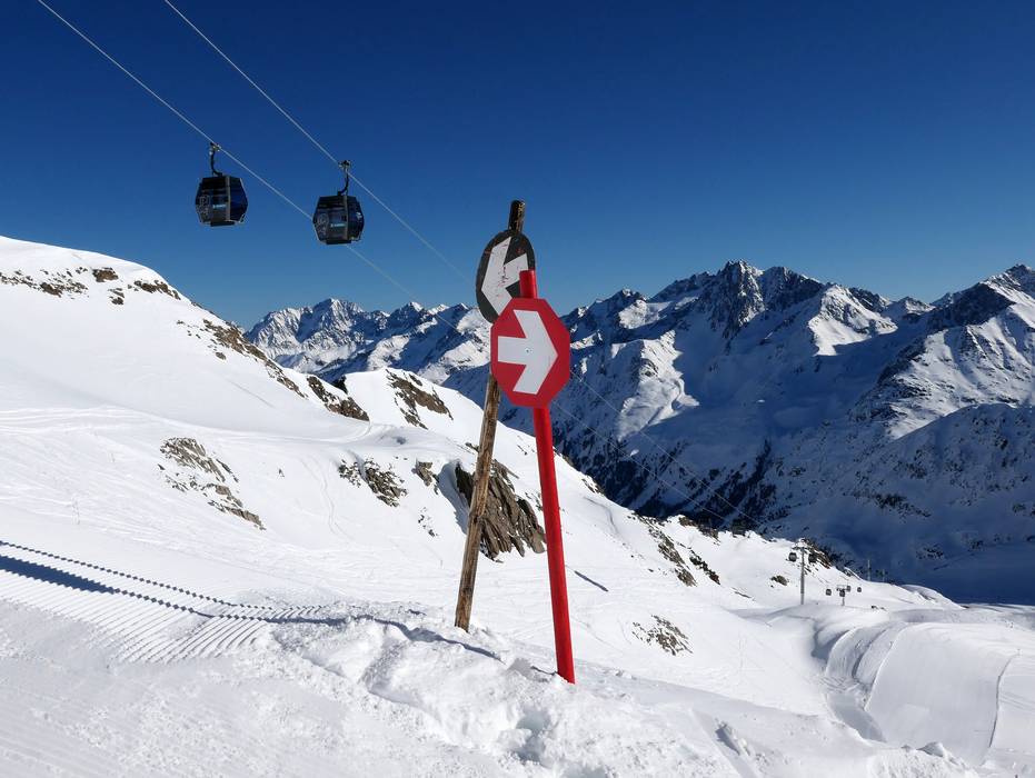 Orientierung (Pistenplan, Informationstafeln, Ausschilderung) und Sicherheit im Skigebiet Kaunertaler Gletscher