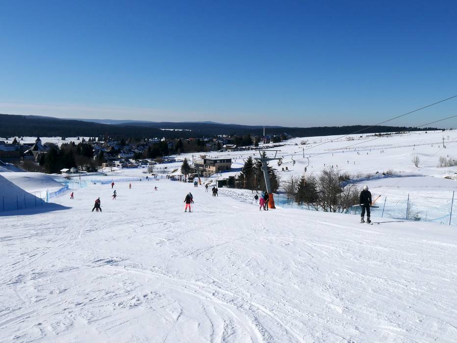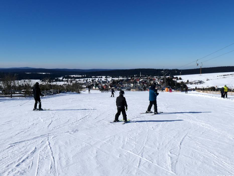 Im Ort Boží Dar erschließen mehrere Schlepplifte besonders breite, leichte Pisten mit gleichmäßiger Neigung – ideal für Anfänger.