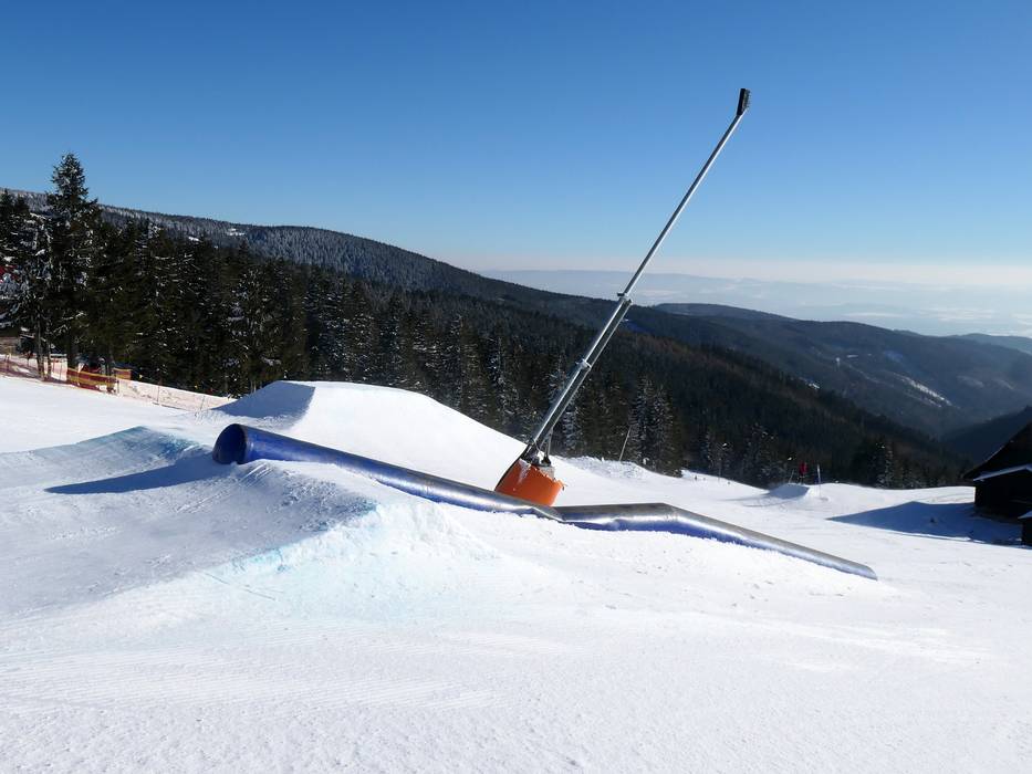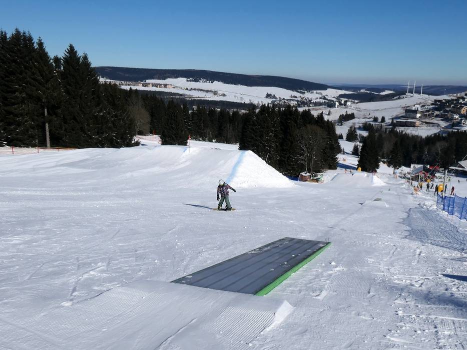 Der Snowpark in Neklid ist einer der ältesten in der Region und er bietet viele Hindernisse und Kicker.