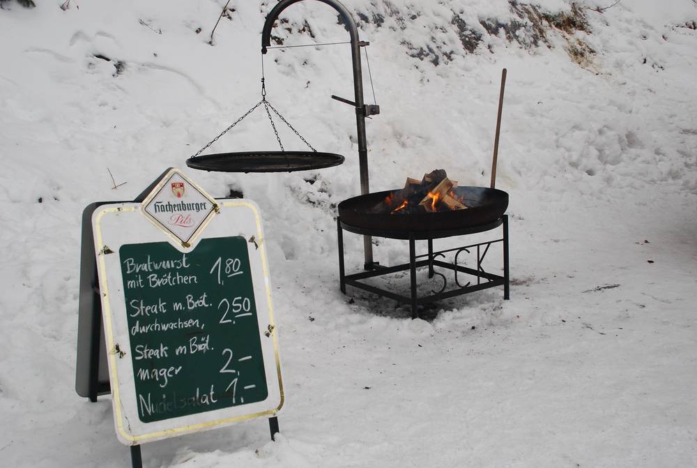 Es gibt genauso viele Hütten wie Lifte, ein sehr gutes Verhältnis. Absolut gesehen bleibt es da trotzdem bei „nur“ einer Hütte, aber die ist von außen nett anzuschauen und drinnen urgemütlich. Das Angebot an Speisen ist zwar beschränkt, dafür aber preiswert. Der Schwenkgrill vor der Hütte sorgt für eine tolle Atmosphäre.