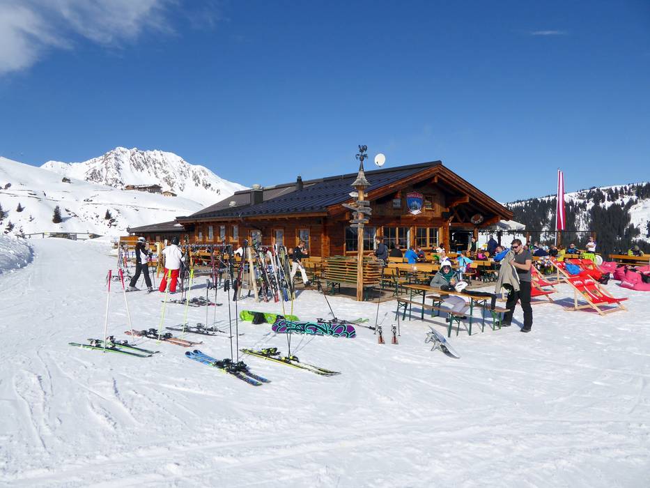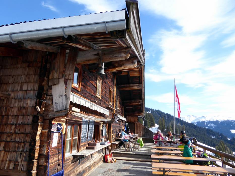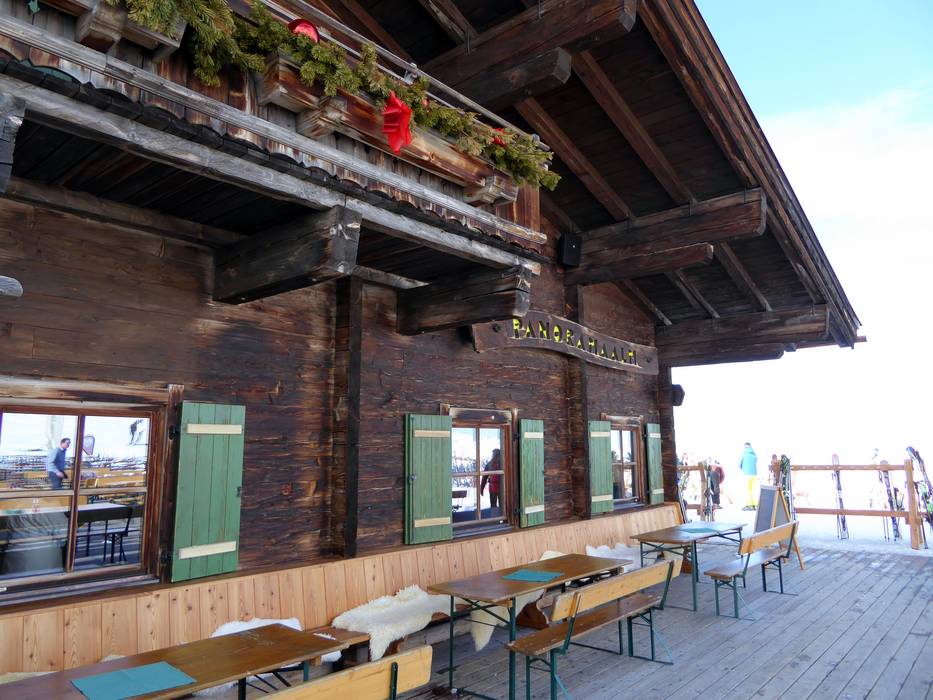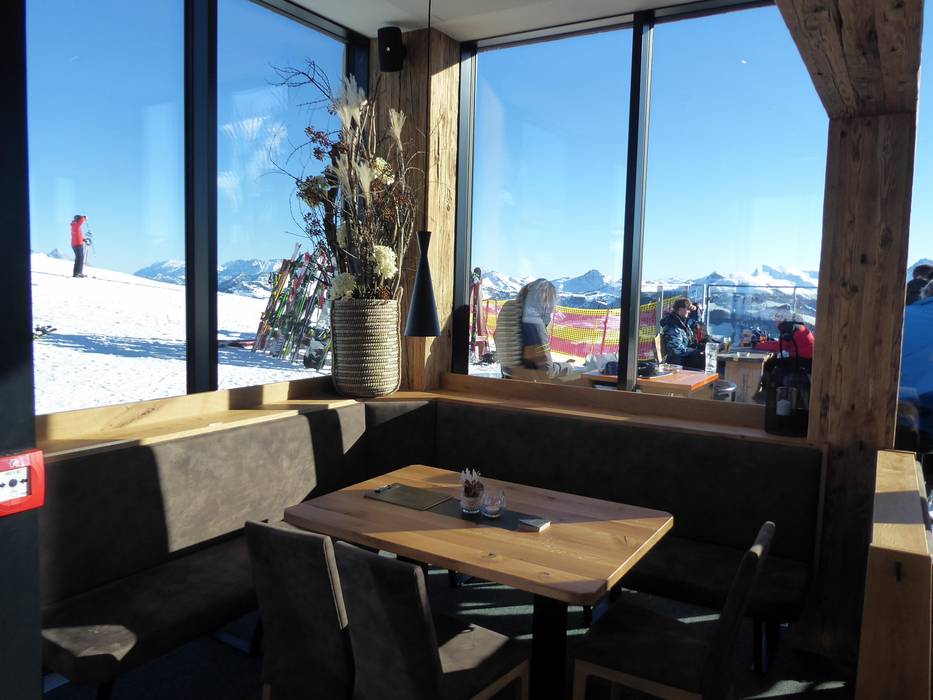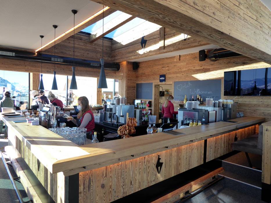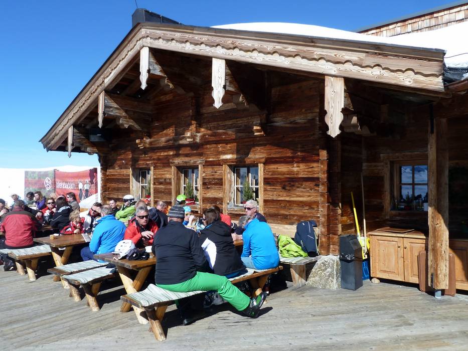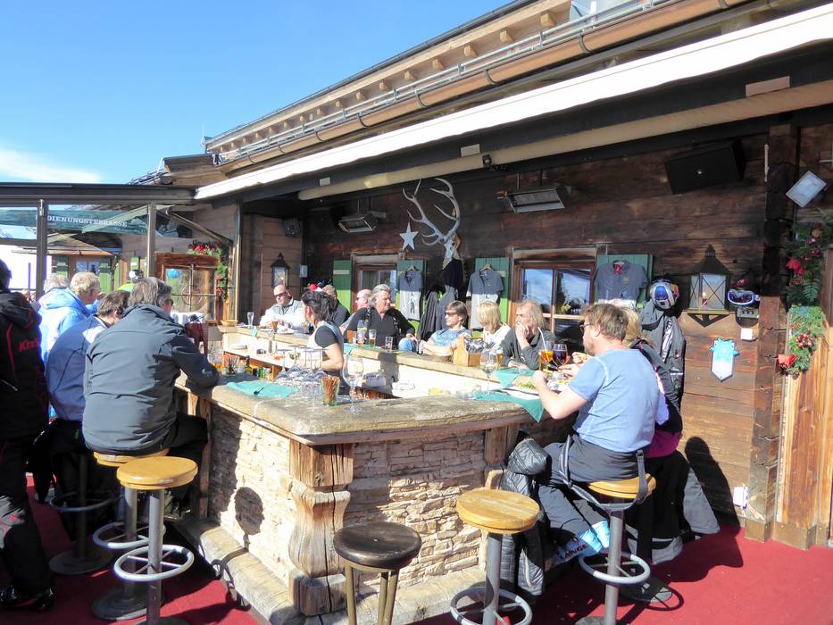 Die Aussicht von der Sonnenterrasse ist etwas ganz besonderes - so ein Panorama findet man so schnell nicht wieder. Die urige Berghütte mit den netten Stuben und gutem Essen lockt die Gäste aus dem ganzen Skigebiet an. Die Bar auf der Sonnenterrasse ist ein beliebter Treffpunkt.