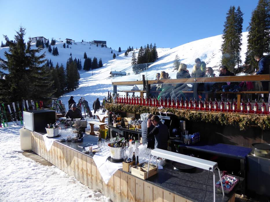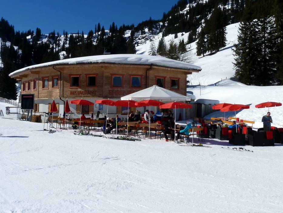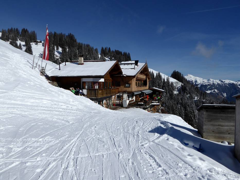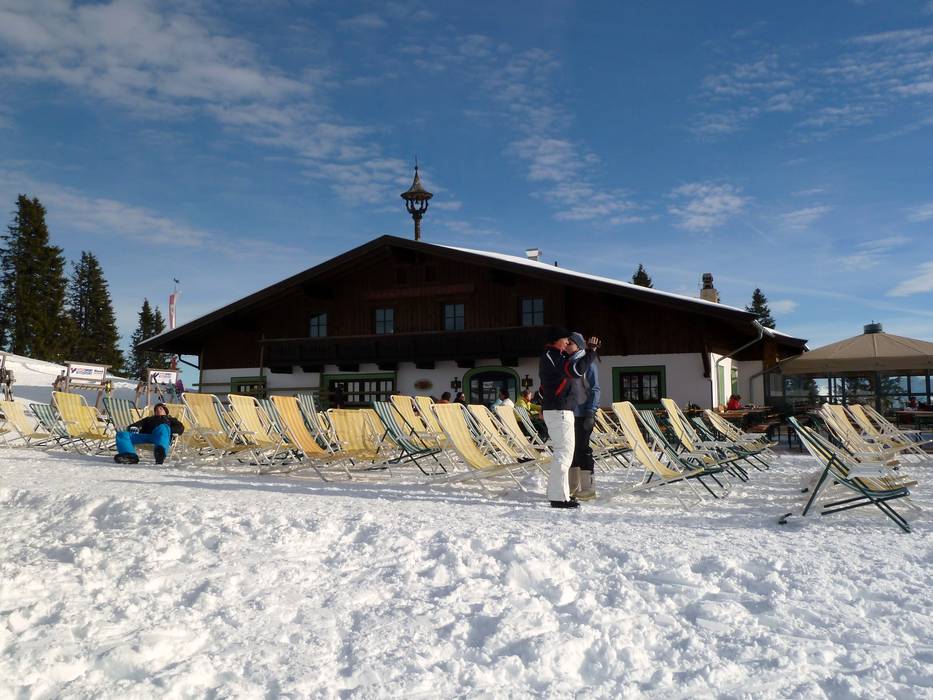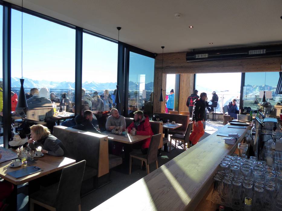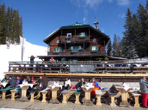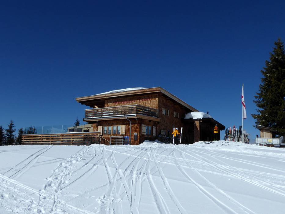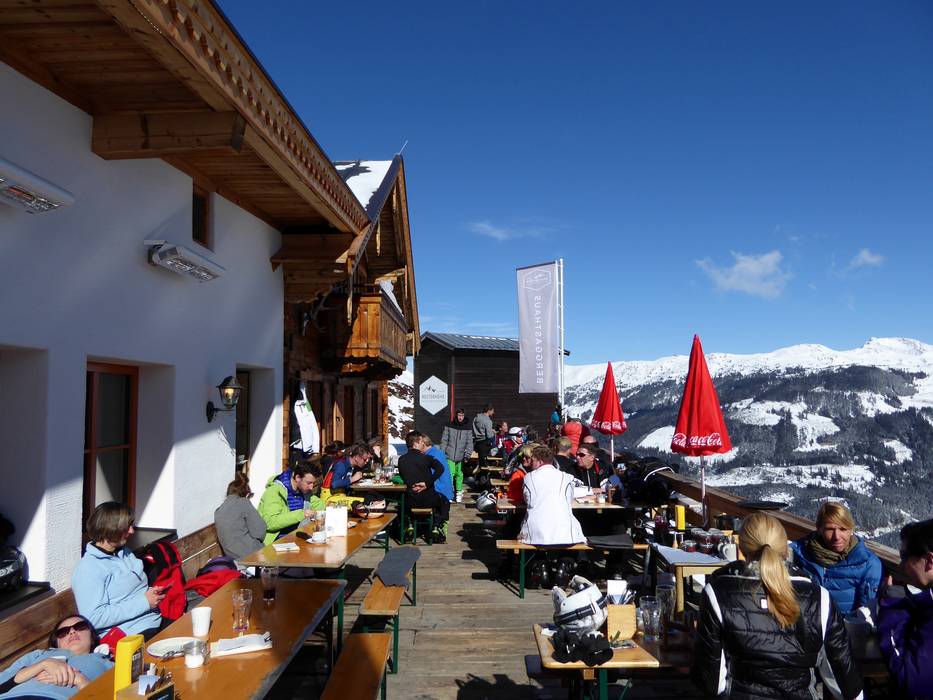 Die Aussicht von der Sonnenterrasse ist etwas ganz besonderes - so ein Panorama findet man so schnell nicht wieder. Die urige Berghütte mit den netten Stuben und gutem Essen lockt die Gäste aus dem ganzen Skigebiet an. Die Bar auf der Sonnenterrasse ist ein beliebter Treffpunkt.