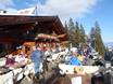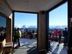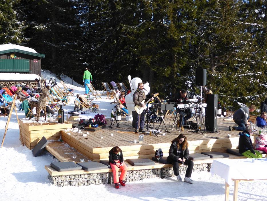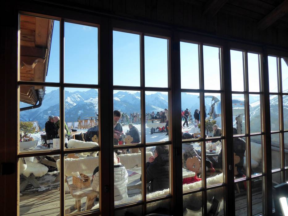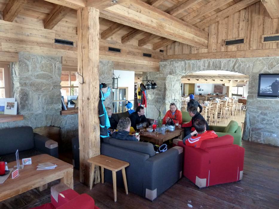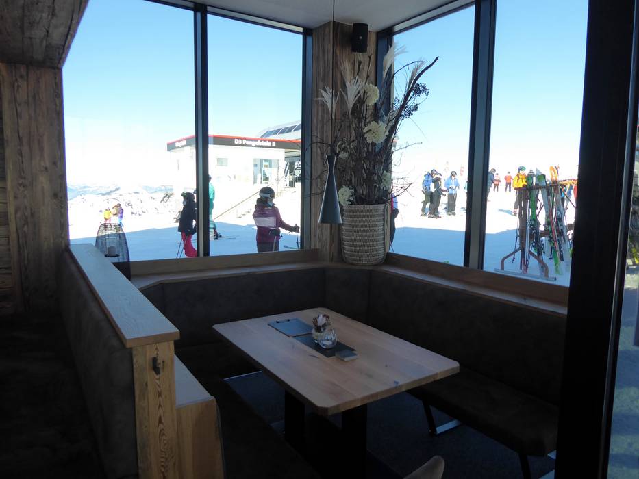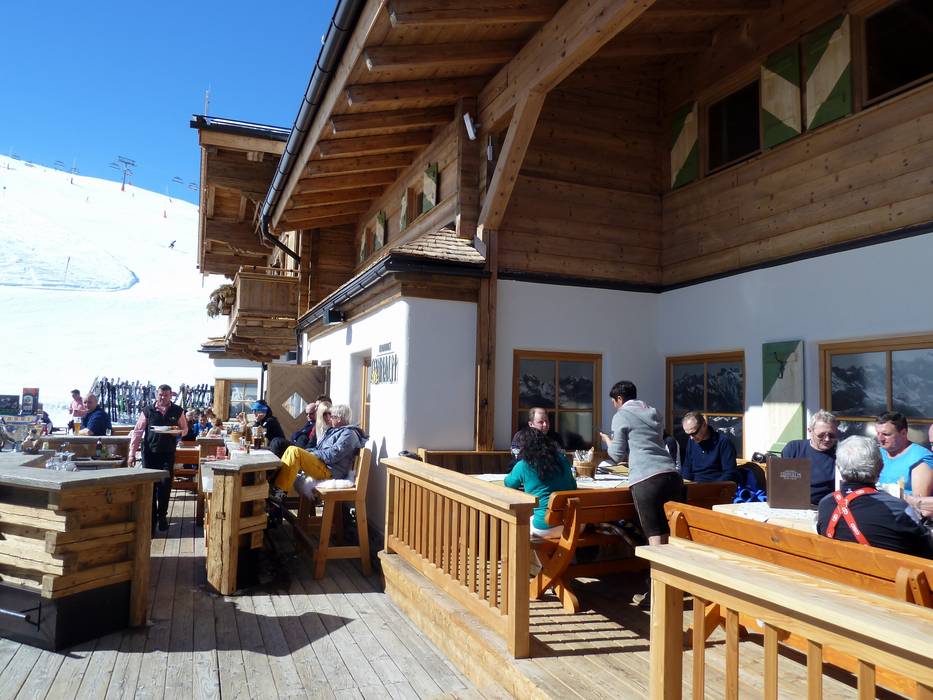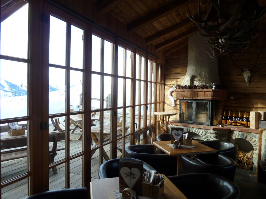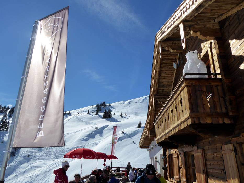 Die Aussicht von der Sonnenterrasse ist etwas ganz besonderes - so ein Panorama findet man so schnell nicht wieder. Die urige Berghütte mit den netten Stuben und gutem Essen lockt die Gäste aus dem ganzen Skigebiet an. Die Bar auf der Sonnenterrasse ist ein beliebter Treffpunkt.