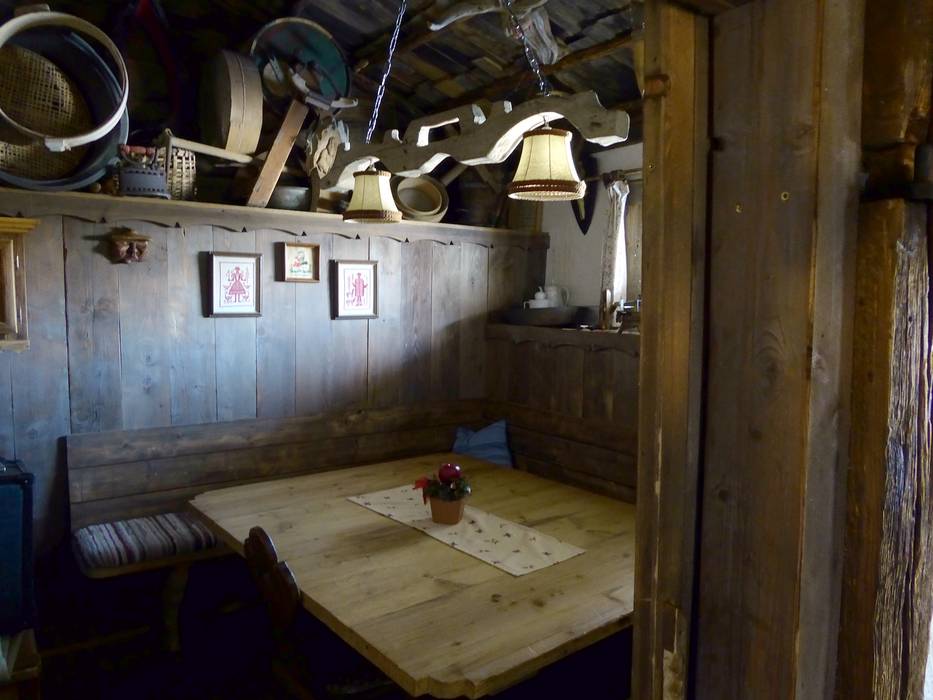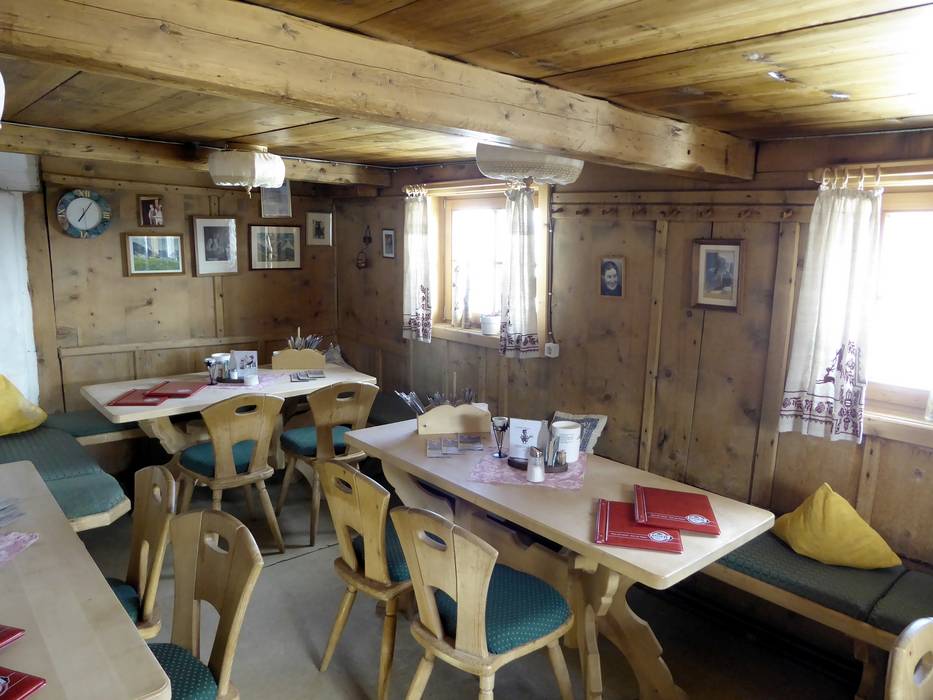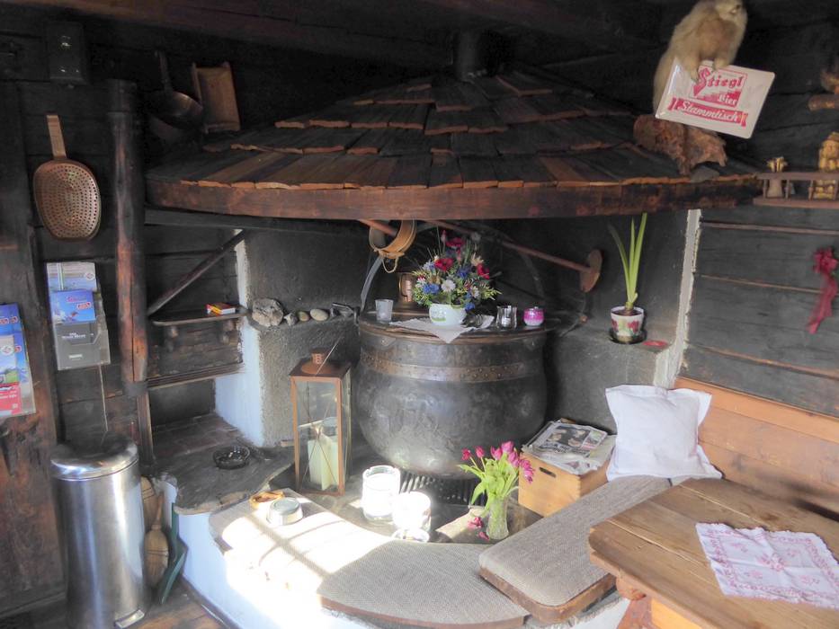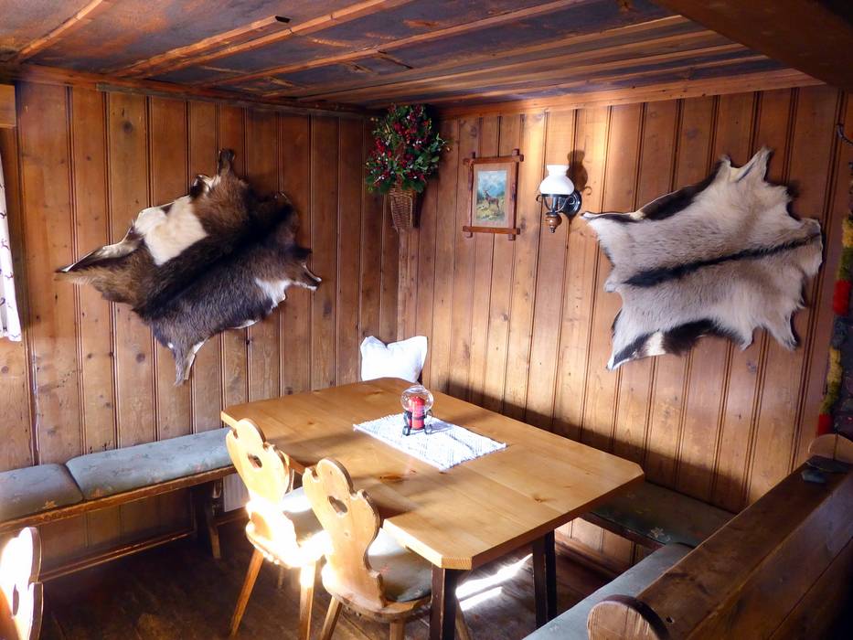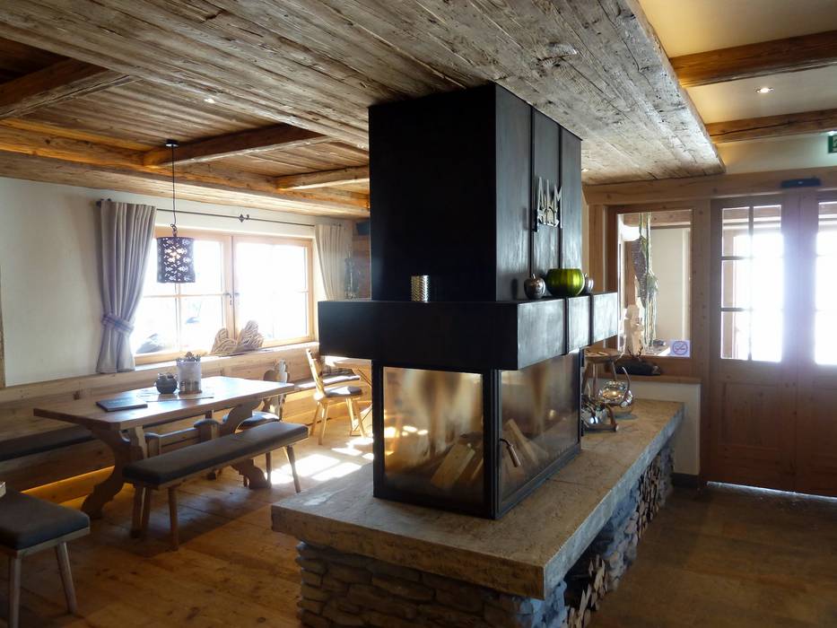 Urige Hütte mit offenem Kamin und gemütlichen Stuben. Bei schönem Wetter lockt die große Sonnenterrasse mit schönem Bergblick.