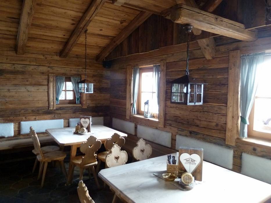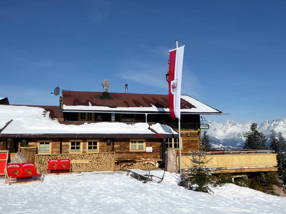 Gemütliche Skihütte mit Tiroler Ambiente und herrlichem Blick auf den Zweitausender. Große Sonnenterrasse und gepflegte Speisen und Getränke. Es wird viel auf Qualität gelegt, so kommt z.B. das Rindfleisch aus der eigenen Anguszucht "Jochberger Angus".